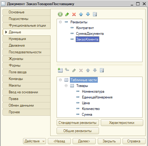 - документов Заказ клиента, Заказ товаров поставщику, Поступление товаров, Реализация товаров;