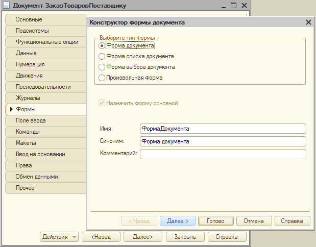 Создадим форму документа.