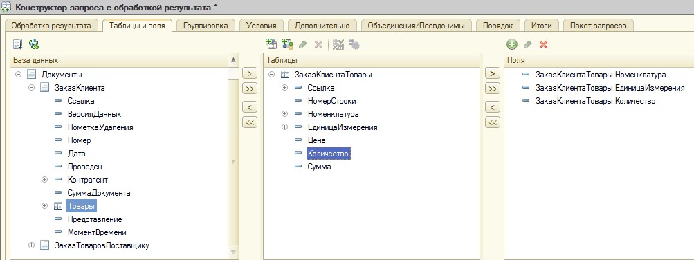 Для определения сводного количества заказанных клиентами товаров может быть использован документ Заказ поставщику, в котором табличную часть Товары можно заполнить товарами, перенесенными из заказов клиентов процедурой обработчиком.