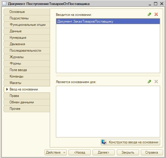 Поступление товаров от поставщика, который заполняется на основании документа Заказ товаров у поставщика.