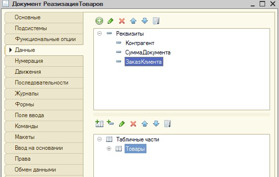 Добавим реквизит ЗаказКлиента. Тип реквизита: ДокументСсылка.ЗаказКлиента.