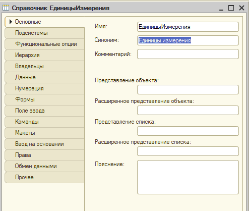 Создадим справочник Единицы измерения.