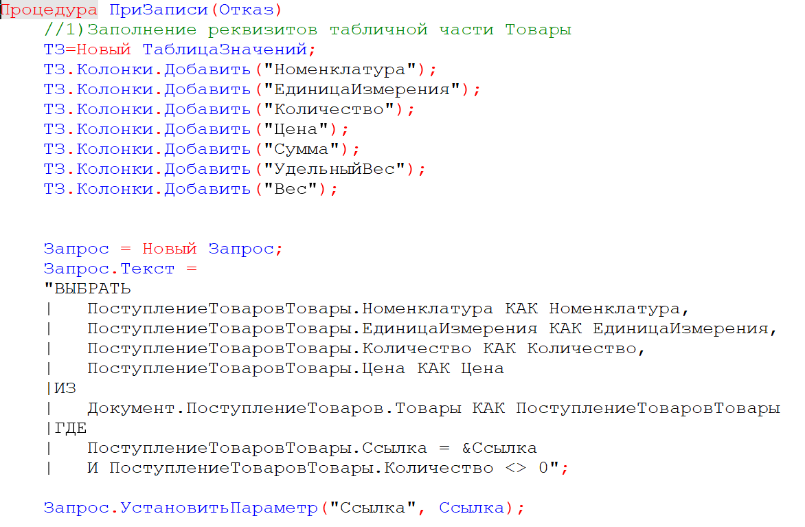 Программирование 1С: использование запросов для авто заполнения табличных частей документов