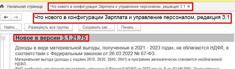 Реализован ли перерасчет НДФЛ с материальной выгоды за 2021 год, в программе «1С: Зарплата и управление персоналом, редакция 3.1?